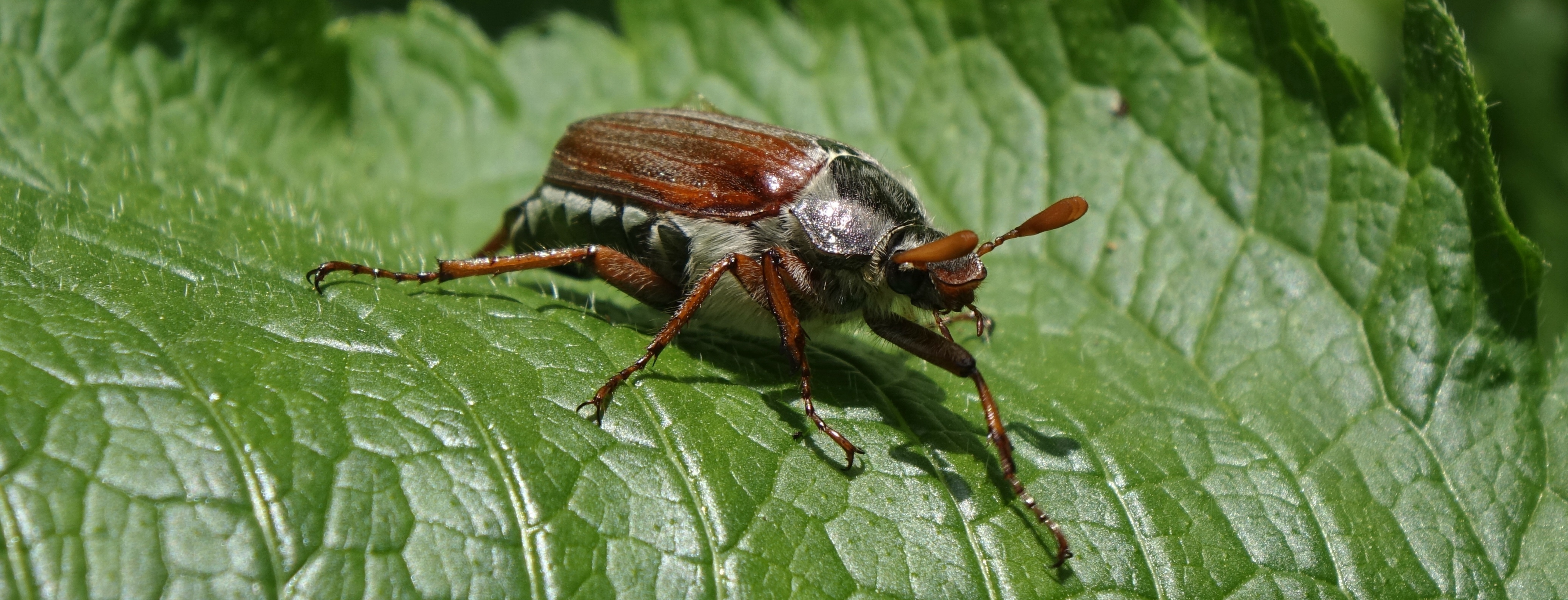 Le hanneton horticole Phyllopertha horticola est un coléoptère qui mesure 0,8 à 1 cm, il a des élites brun rouge et un thorax vert métallique. Il vole le jour de début mai à début juin. Sa larve mesure 1 à 2 cm.